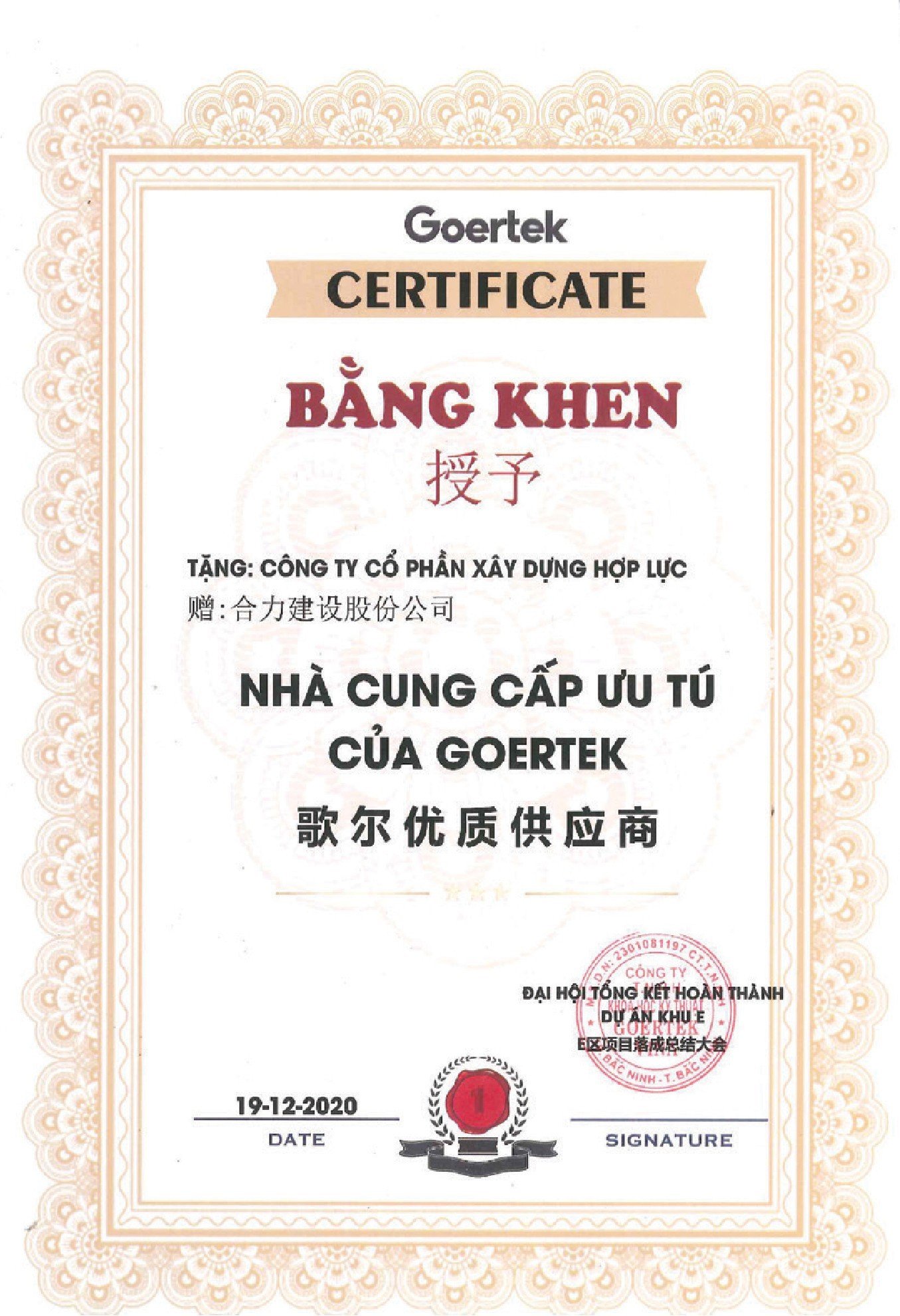 Bằng khen "Nhà cung cấp ưu tú của Goertek"